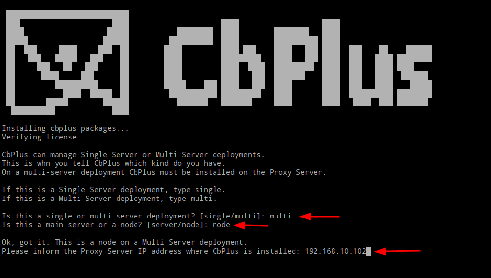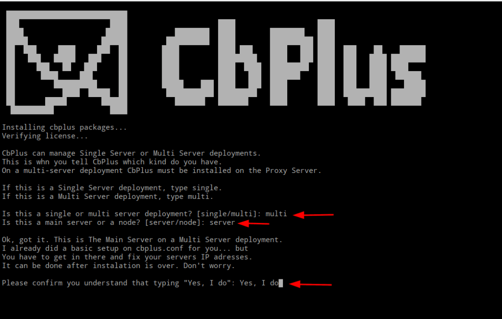 c) Since the answer is “server”, the installer provides a brief explanation about the importance of editing the cbplus.conf file and correctly setting the IP addresses of each server in the Multi-Server deployment. We will discuss the cbplus.conf file in more detail later.