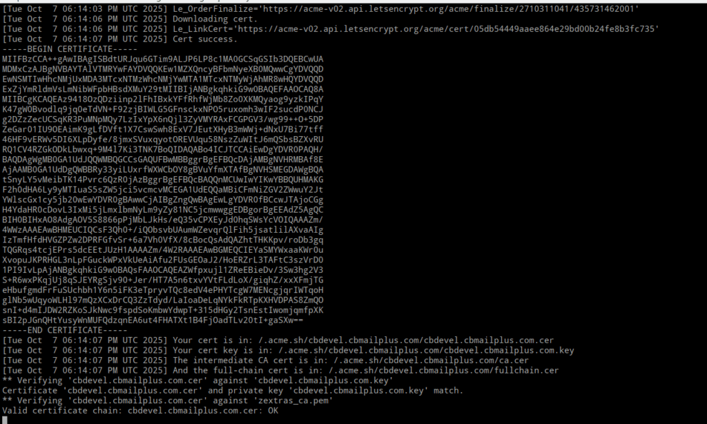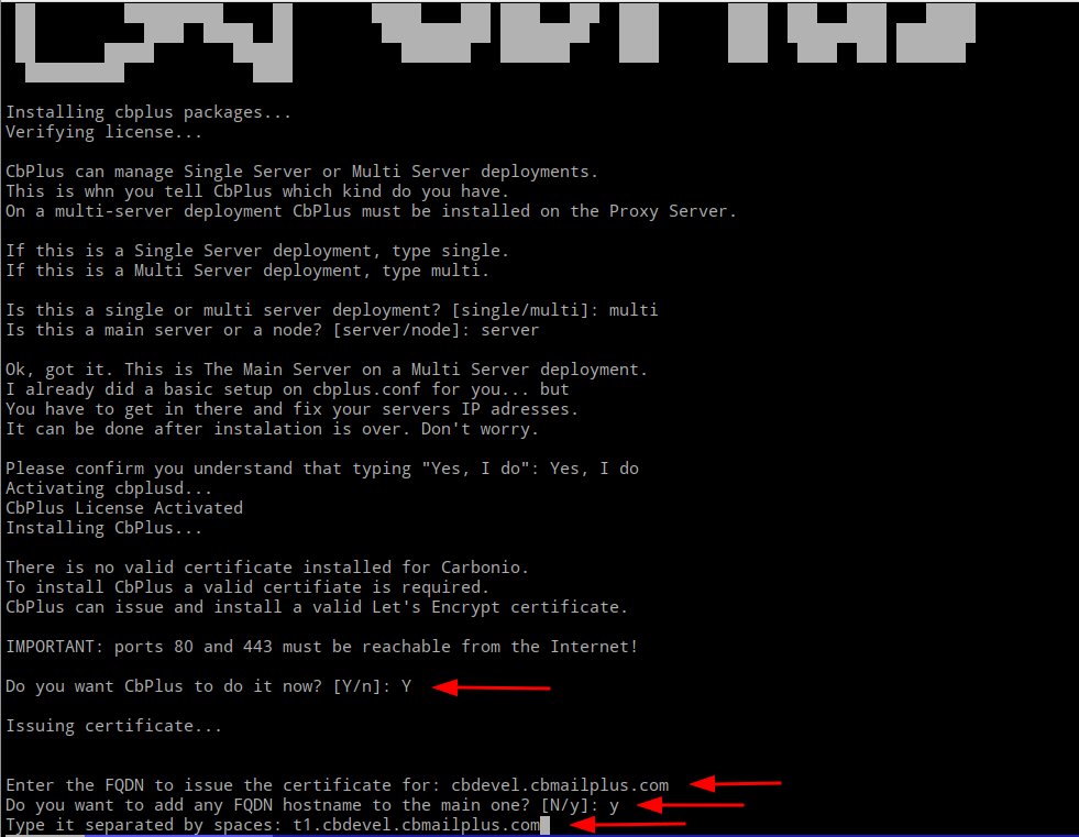 It is important to clarify that this process may fail due to reasons beyond the CbPlus installer’s control. Let’s Encrypt servers might be overloaded, there could be DNS errors, or network failures may happen.