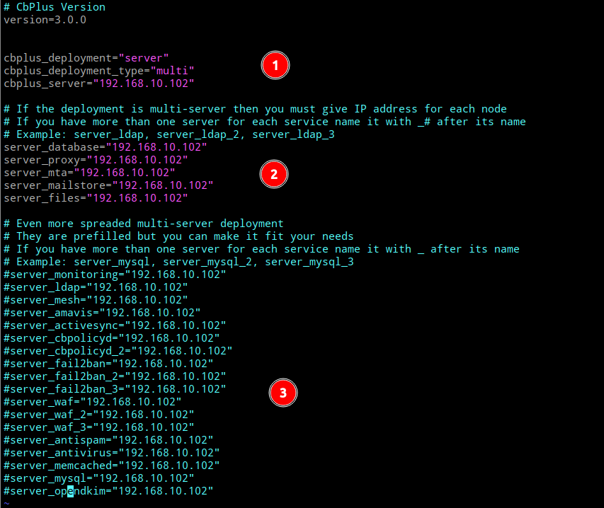 In this case, CbPlus will understand that there are 3 MTA servers, each with its own IP address. This is how CbPlus knows it must execute MTA-related commands on all servers in the deployment.